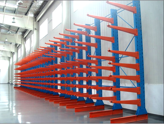 悬臂式货架可以选择单臂和双臂,土字型材立柱,设计是背拉式原理大大提高稳定性,卡高强度悬臂利用插销稳固,插销之间有安全卡扣,可预防叉车作业粗心触碰,提高安全性,具有结构轻巧载重能力好和空间利用率高,悬臂式货架立柱斜孔冲压设计,悬臂可以根据需求调节间距,可充分提高空间利用率,使仓库物资管理规范化、标准化,与多堆机或者叉车配套使用既能提高物资流通效率又可减低储存运费,减低成本,提高资流通的机械化水平,减少劳动强度,改善劳动条件,悬臂式货架长度可以根据场地自由组合,采用单臂或双臂使用,大大提高效率等优点,因高强度悬臂,每臂可承重达2吨以上,高度依照每10厘米为单元上下调节常用于钢材储存、长条形和钢管等货物储存。